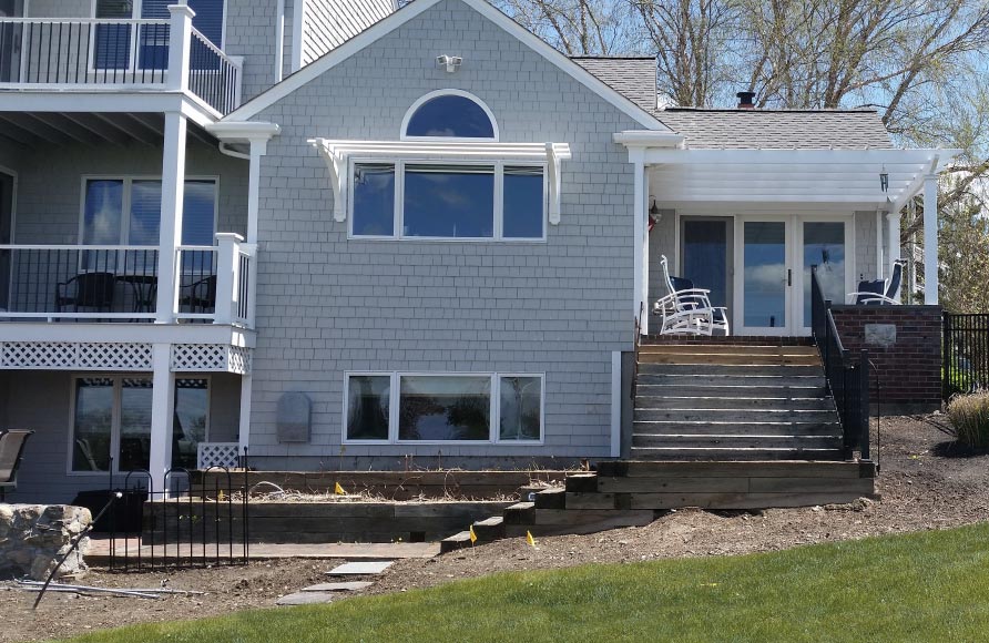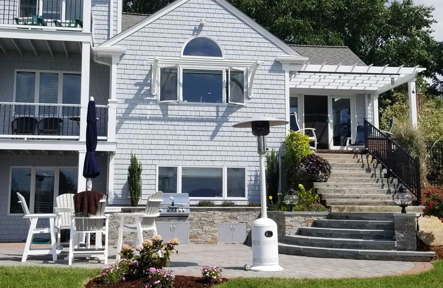This project was made possible by clients who were not afraid to step outside of conventional design and in turn, received remarkable workmanship. As an accent to the rectilinear architecture of the house, I implemented the curvilinear hardscape elements you see before you. The clients’ vision was to create an entertaining area for their large family that organically transitioned to their lawn space. Another aspect to this project was the reuse of many materials such as the light fixtures and the repurposing of the old paver patio into the stunning red paver accents. Utilizing the most organic of shapes, the circle, I was able to build layers and define areas to create the signature curvilinear design of this project.